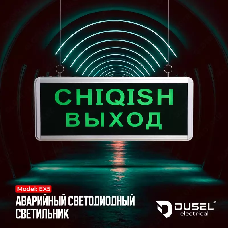 Аварийное светодиодное табло (Выход-Chiqish) "Dusel" EX5, 3W, IP20 (Зеленое)