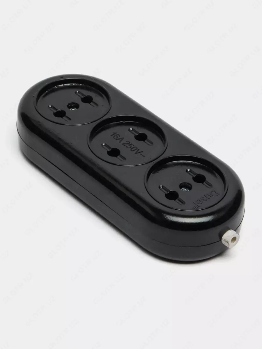 Колодка-розетка для удлинителя (3 гнезда) "Dusel" DU-18, без заземления (Черная)