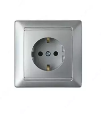 Yagona elektr rozetkasi (yerga ulangan) "Dusel" Rich, 16A, 220-250 V (Kumush)